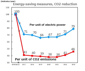 Introducing solar power and switching to LED lighting contribute to reducing carbon dioxide emissions.