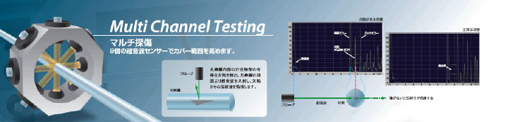 Ultrasonic testing detects defects inside products.